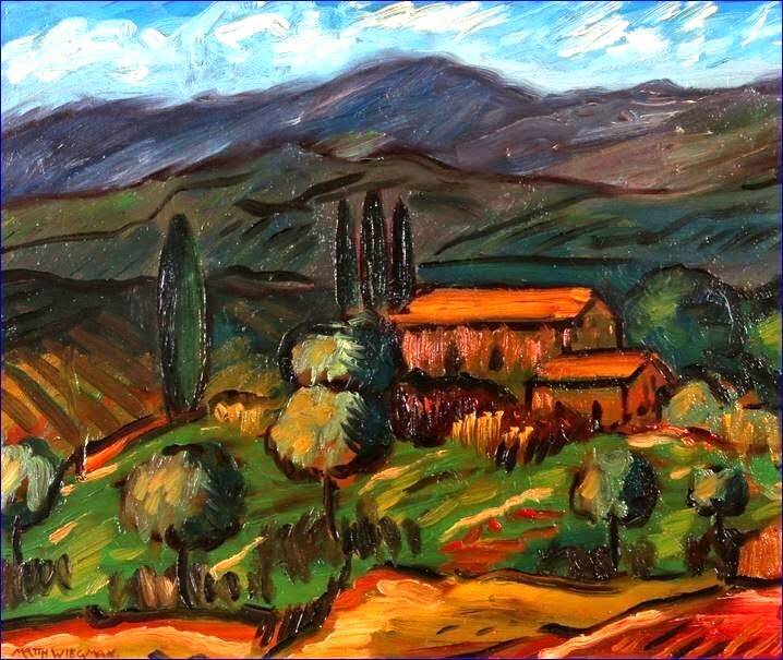 Matthieu Wiegman, Cagnes, Olie op doek, ca. 1928, 38 x 46 ex. lijst, 48 x 56 incl. lijst. Vraagprijs € 2400,--