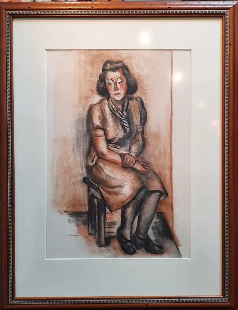 Matthieu Wiegman, Zittende vrouw, Aquarel/tekening, voor 1930,44 x 31 ex lijst. Vraagprijs€ 420,--